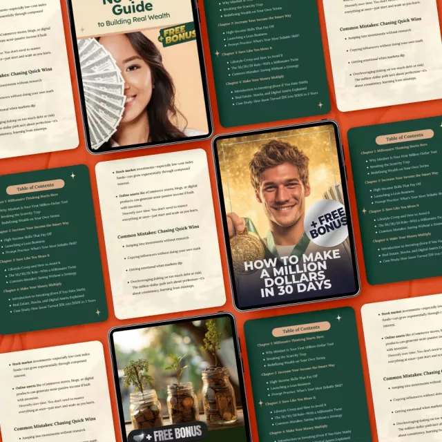 Most digital products teach vague ideas or surface-level concepts. This 5-in-1 collection is different. It focuses on realistic execution, real numbers, clear examples, and simple language you can actually use. Every resource is crafted to remove the confusion around wealth-building and help you master repeatable, scalable habits that move you toward seven figures with confidence.