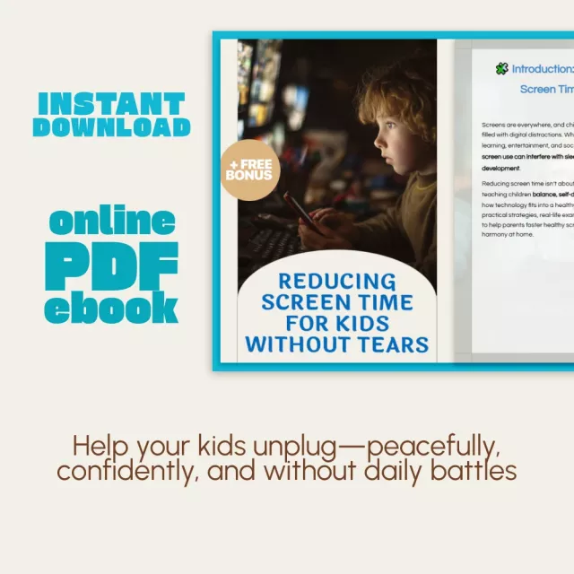 I was at my wit's end trying to manage my children's screen time. It seemed like every day was a battle, and I was always on the losing side. Then I came across this eBook guide for parents that promised to help reduce screen time without tears or tantrums. Skeptical but desperate, I decided to give it a try, and boy am I glad that I did! The practical tips and strategies provided in the workbook have made such a difference in our household. There are no more fights over screens; instead, we're spending quality family time together playing board games or exploring nature outdoors.
