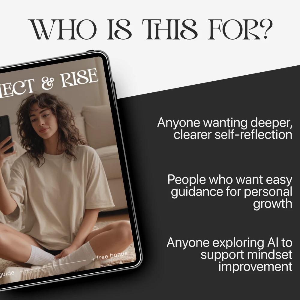 Reflect & Rise — Self-Reflection Guide with AI | Digital Download eBook & Printable Checklist | Mindset Growth Journal Prompts