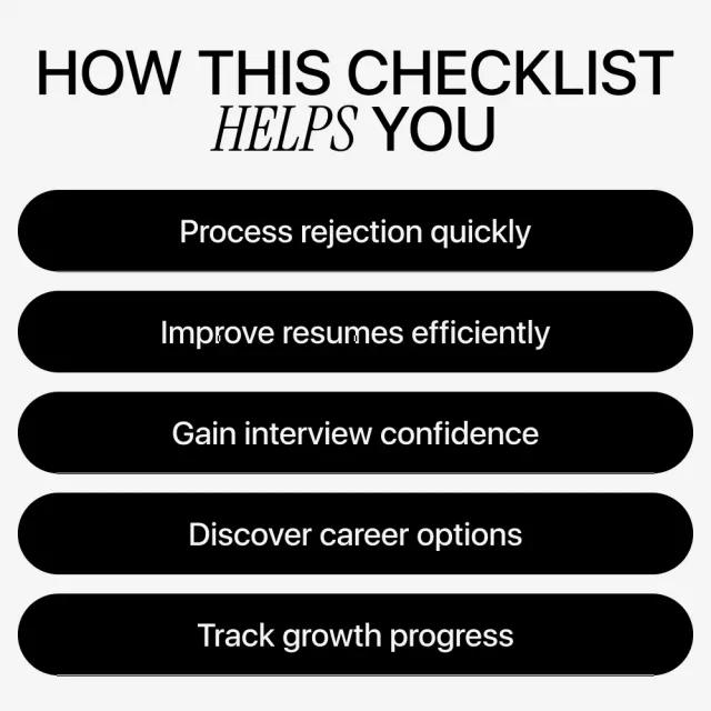 This checklist is perfect for job seekers, career changers, and professionals navigating multiple rejections. Whether you’re applying to your first role, climbing the corporate ladder, or exploring new fields, Rejection Reset gives you tools to handle rejection like a pro and emerge stronger every time.