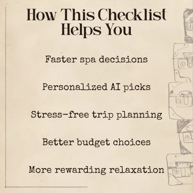 This checklist doesn’t just list spa tips—it teaches you how to make smarter choices using ai that finds the best spas. Instead of relying on random reviews or guessing which spa is right for you, you’ll learn a streamlined method that combines human intention with intelligent technology. This makes your planning faster, easier, and more accurate than traditional spa guides.