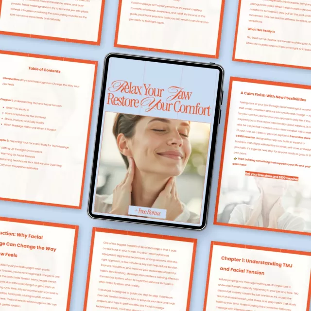 If jaw tension, facial tightness, or TMJ discomfort has become part of your daily life, this guide was created for you. Relax Your Jaw Restore Your Comfort is a practical, easy-to-follow ebook designed to help you understand what’s happening in your jaw and, more importantly, what you can do about it. This digital guide walks you step by step through how to do a facial massage for tmj in a way that feels safe, calming, and realistic for everyday life. No complicated routines, no overwhelming anatomy lessons, just clear guidance focused on real relief.