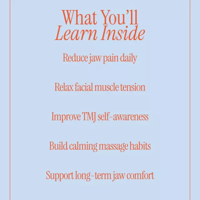 This ebook is ideal for anyone dealing with TMJ discomfort, jaw clenching, facial pain, or stress-related tension. It’s especially helpful if you’ve tried random videos or generic advice and felt overwhelmed or unsure. What makes this guide different is its gentle, realistic approach. Instead of pushing aggressive techniques, it focuses on awareness, consistency, and comfort. It combines education, hands-on massage guidance, and habit-building strategies into one calm, supportive resource.