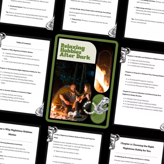 Unlike generic hobby lists, Relaxing Hobbies After Dark focuses specifically on nighttime needs. It blends creativity, mindfulness, and modern AI support into one practical, calming resource you can return to night after night.