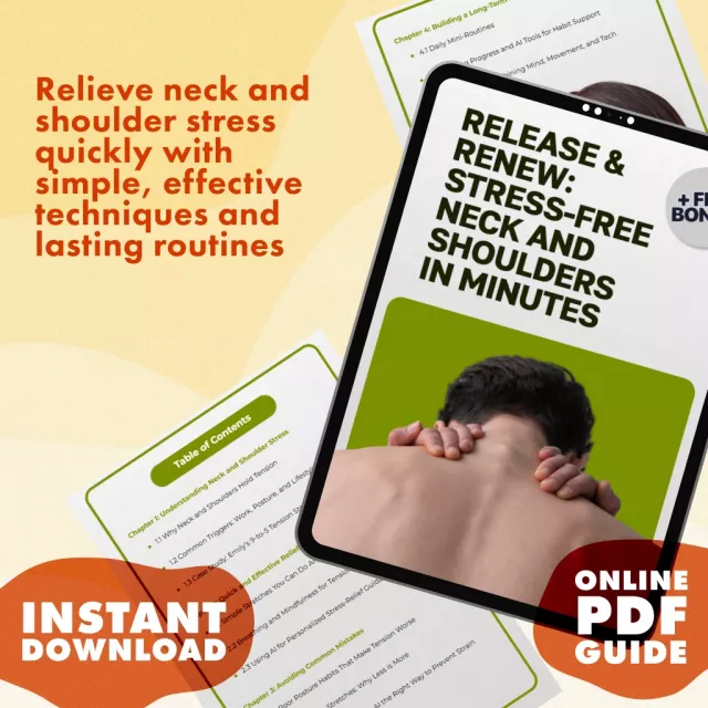If you’ve ever ended the day with tightness in your neck and shoulders, you know how much it affects your mood, energy, and focus. Release & Renew: Stress-Free Neck and Shoulders in Minutes is a practical, easy-to-follow digital guide designed to help you relieve stress in neck and shoulders quickly and effectively. With expert insights, real-life examples, and guided steps, this downloadable resource helps you transform tension into relaxation—all in just minutes a day.
