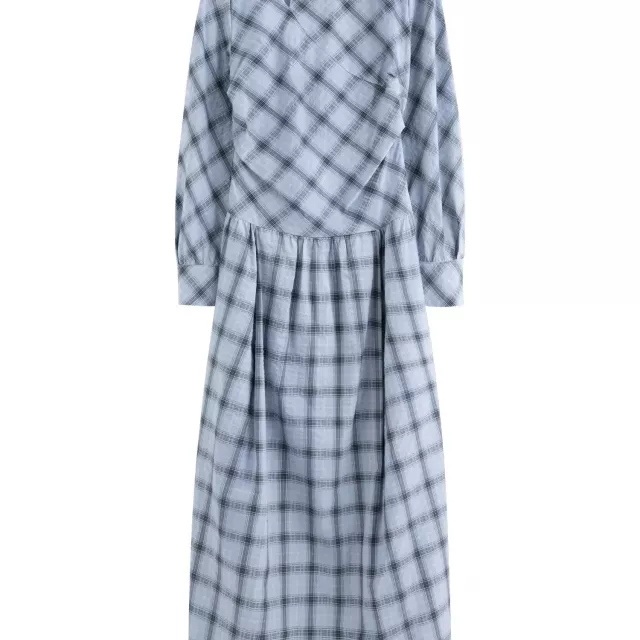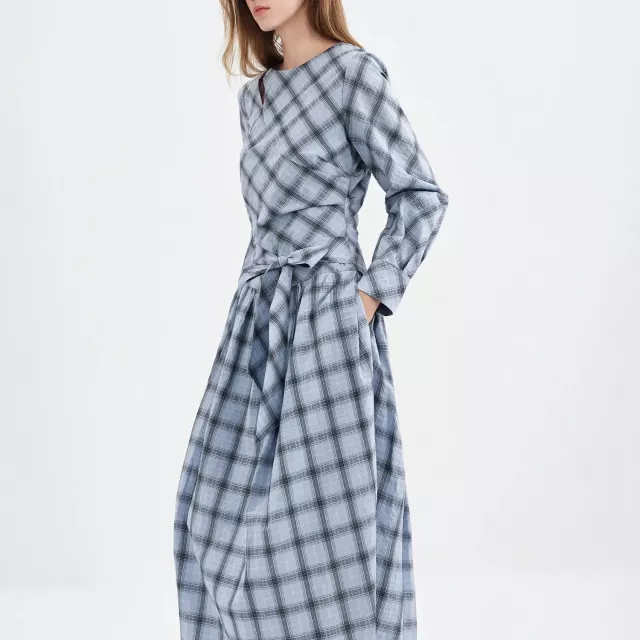 This retro-inspired blue-grey plaid dress blends timeless charm with everyday comfort. Designed with a slim A-line silhouette and a fitted waist tie, it gently shapes your figure while keeping movement easy and natural. The classic plaid pattern adds a polished, commuting-ready look, while the long sleeves and soft cotton fabric make it ideal for cooler days. This is the kind of dress you’ll reach for when you want to look put-together without overthinking your outfit.