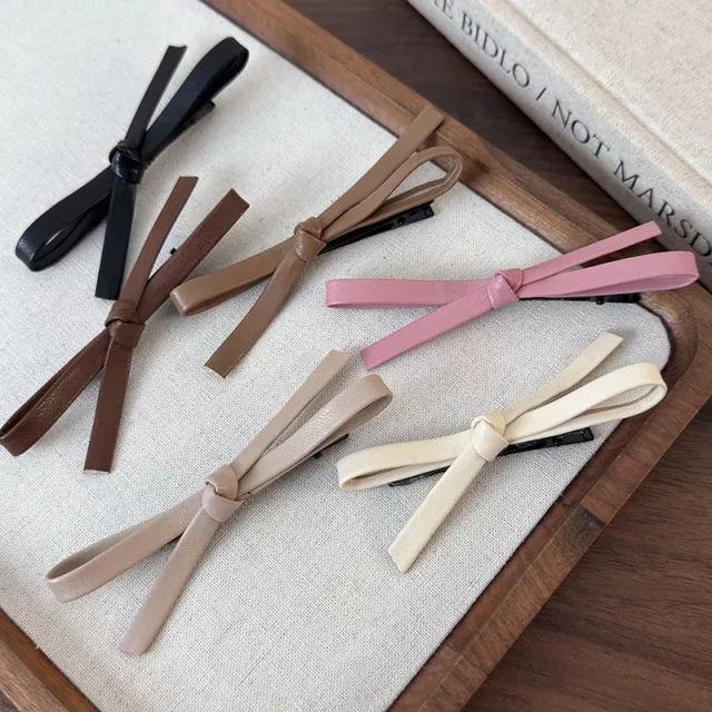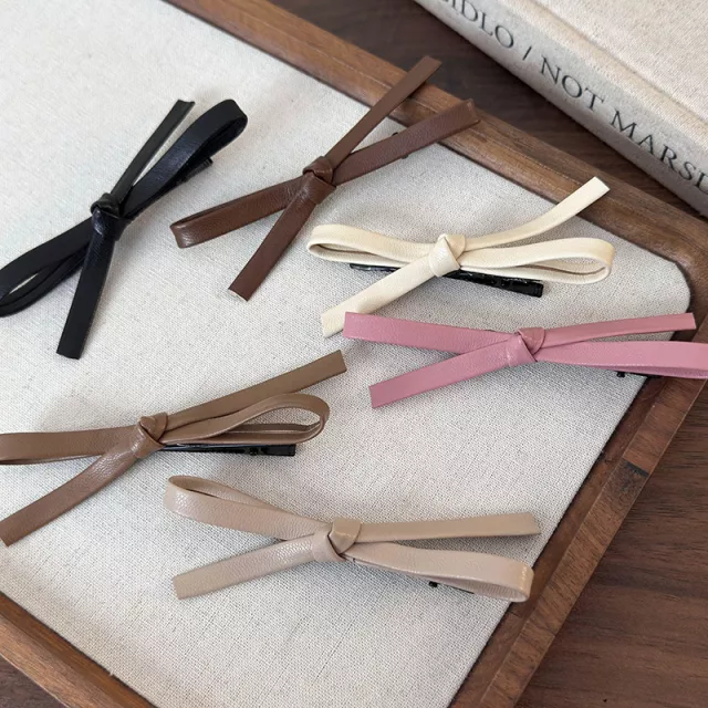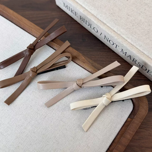Perfect for everyday wear or special occasions, this leather bow barrette adds a sweet and stylish accent to any outfit. The coffee brown shade is versatile, making it easy to pair with everything from cozy sweaters to elegant dresses. The synthetic leather offers a smooth, polished look, while the sturdy alloy clip ensures a secure hold without tugging or damaging hair. Whether worn with loose waves, a chic ponytail, or a neat bun, this accessory complements a wide range of hairstyles and personal styles.