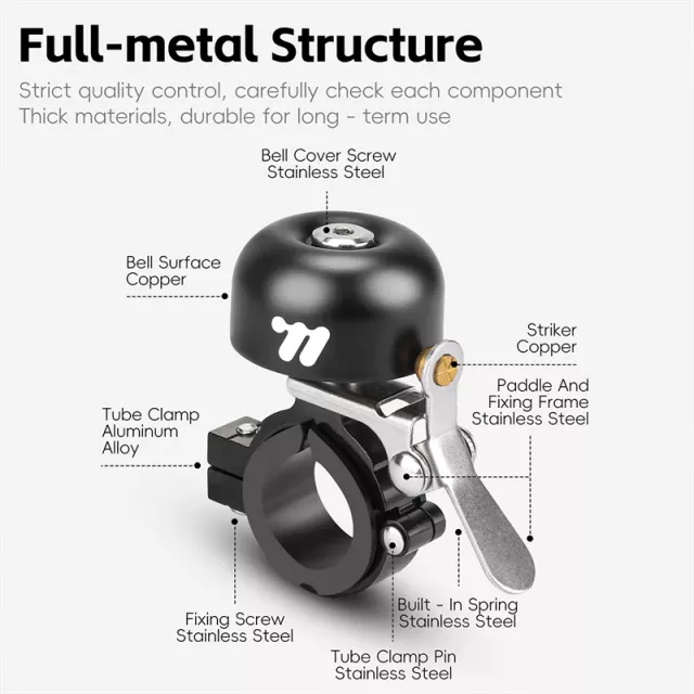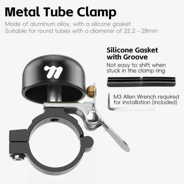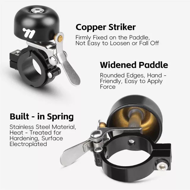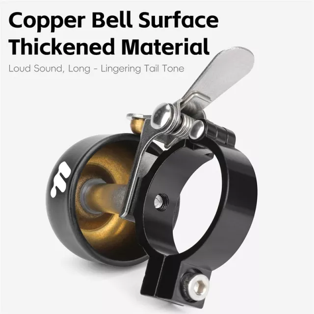 Crafted from a blend of copper and aluminum alloy, this bell combines strength with a lightweight feel. At just 2.1 oz, it won’t add unnecessary bulk to your bike. The universal fit accommodates handlebar diameters between 0.87 and 1.1 inches, making it suitable for both mountain and road bikes. A single copper striker produces a sharp, single-tone ring, instantly grabbing attention without being overbearing.