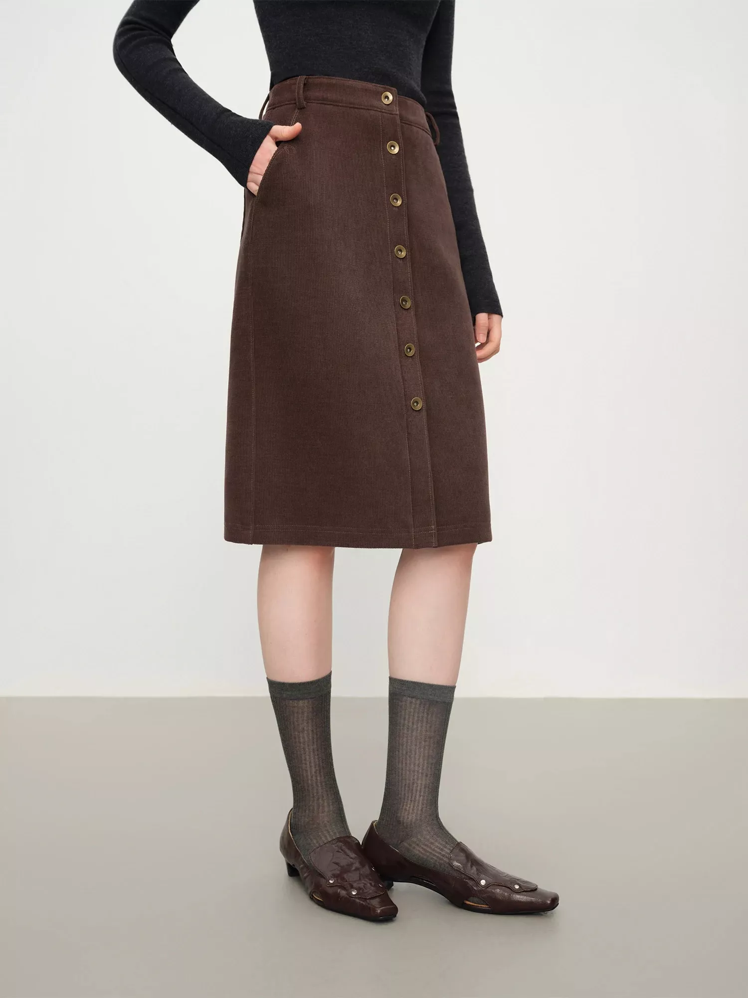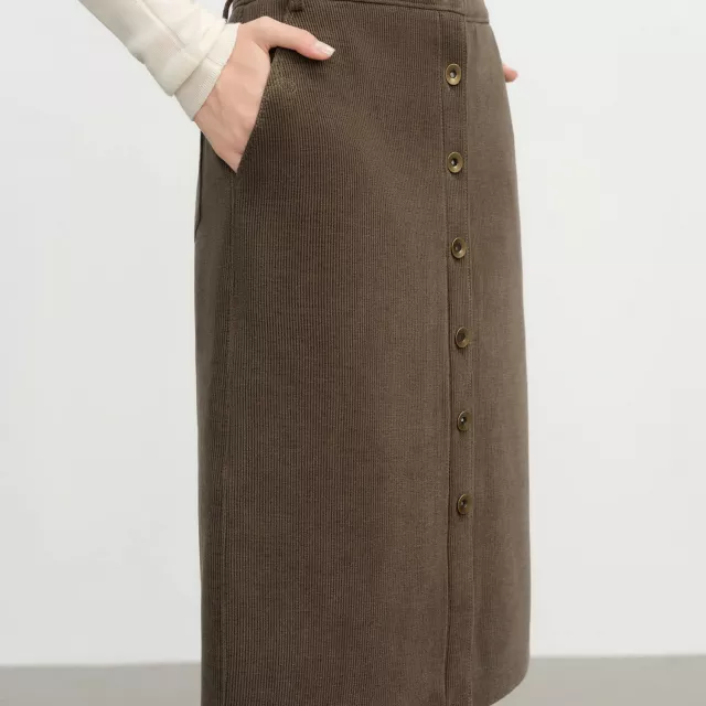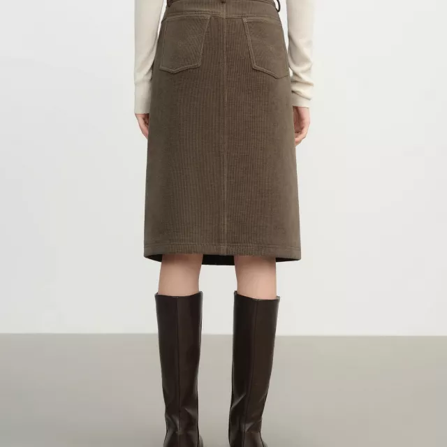 Unlike ordinary winter skirts, this piece is crafted from a soft corduroy fabric made with 97.3% polyester and 2.7% spandex, giving it a smooth finish and a slight stretch for all-day comfort. The empire waistline flatters your figure while the straight silhouette creates a clean, professional shape. Functional pockets add convenience without sacrificing style – perfect for busy commuting days.