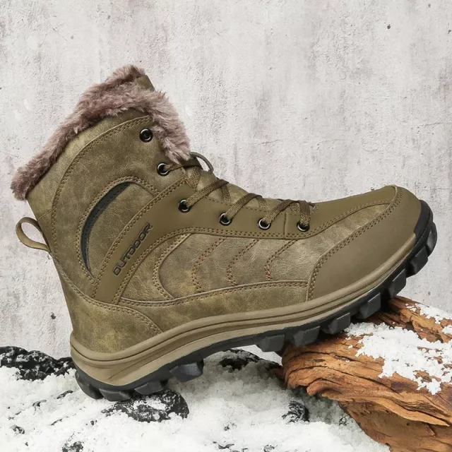 Retro Leather Winter Hiking Boots for Men – Warm Plush Snow Shoes