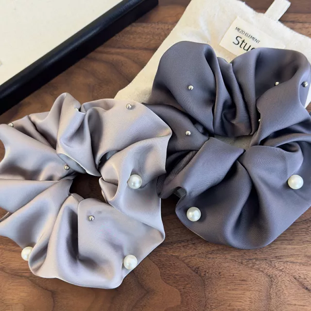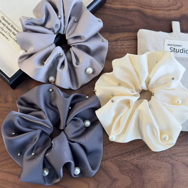 Retro Satin Pearl Hair Scrunchies & Headband Set