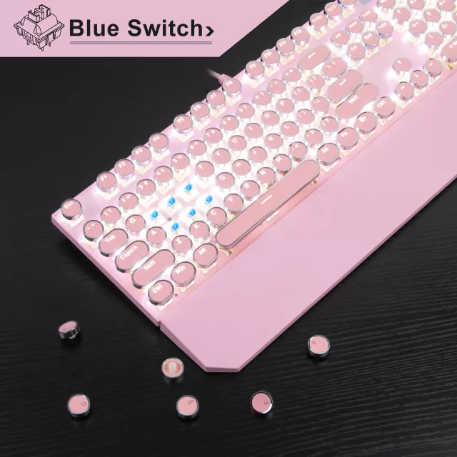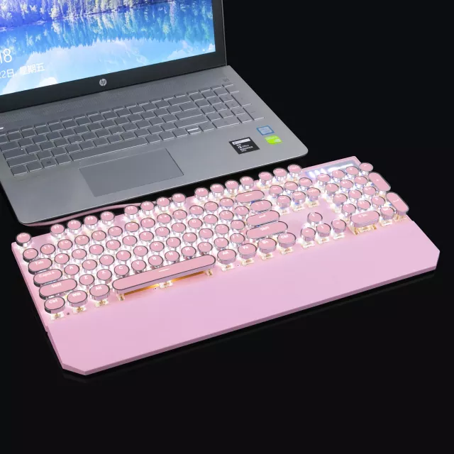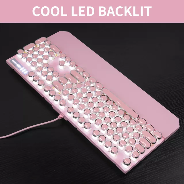 Step into a world where old-school style meets modern performance. This retro-inspired mechanical gaming keyboard is designed with eye-catching round typewriter-style keycaps and a stunning RGB backlit display. Every keystroke delivers a crisp, clicky sound that makes typing and gaming more enjoyable, bringing that satisfying typewriter feel into today’s digital age. Perfect for gamers, writers, and anyone who loves a touch of nostalgia in their workspace.