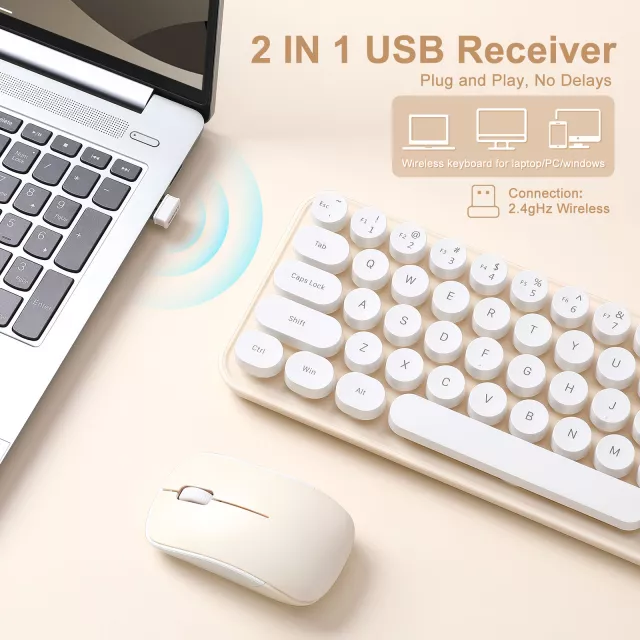 Add a touch of retro flair, effortless functionality, and comfort to your daily routine. Upgrade your typing and navigation experience with this wireless keyboard and mouse combo and transform your desk into a stylish, efficient workspace. Experience smooth typing, ergonomic design, and vibrant style all in one compact package.