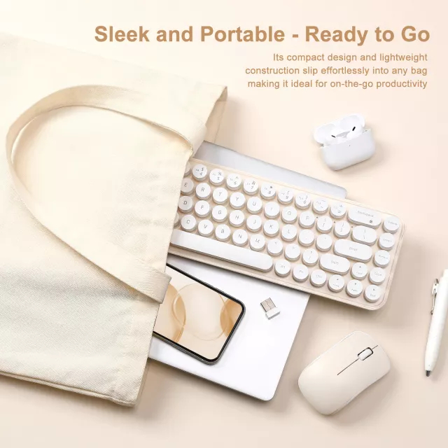 Bring a splash of color and personality to your desk with this retro-inspired wireless keyboard and mouse combo. Designed in a classic typewriter style, it combines vintage charm with modern functionality, creating a stylish workspace that stands out. Its compact 65 percent layout saves up to 40 percent of desktop space, making it perfect for home, office, or on-the-go use.