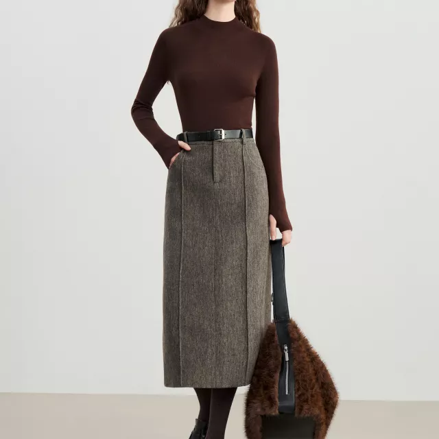 Step into winter confidently—add this refined slit wool skirt to your wardrobe and elevate your seasonal style with ease.