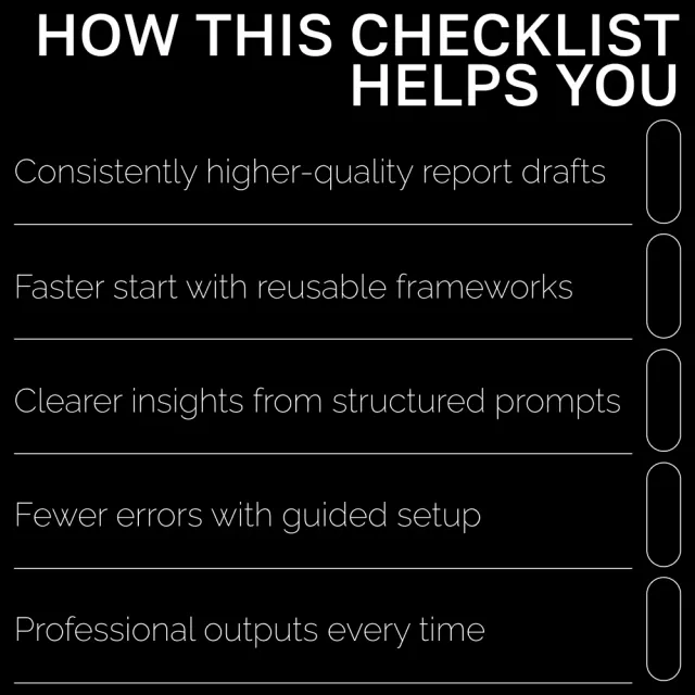 This digital checklist is perfect for freelancers, consultants, managers, students, content creators, and anyone who relies on AI to generate high-quality reports. If you want reliability, efficiency, and repeatability, this guide was built for you.