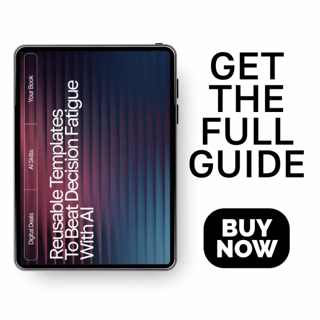 Download Reusable Templates to Beat Decision Fatigue with AI now and experience how effortless decision-making can be. With these reusable prompt templates for decision fatigue, you’ll save time, reduce stress, and finally create mental space for what matters most.