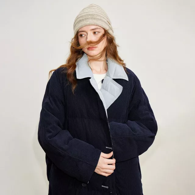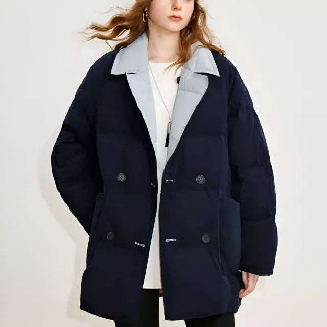 What sets this jacket apart is its reversible color block design. Instead of owning two different winter coats, you get two looks in one. The tailored notch lapel adds structure and refinement, rare for most casual down jackets. Crafted with fine tatting weaving, it delivers a smooth, high-quality finish while remaining soft and cozy against your skin.