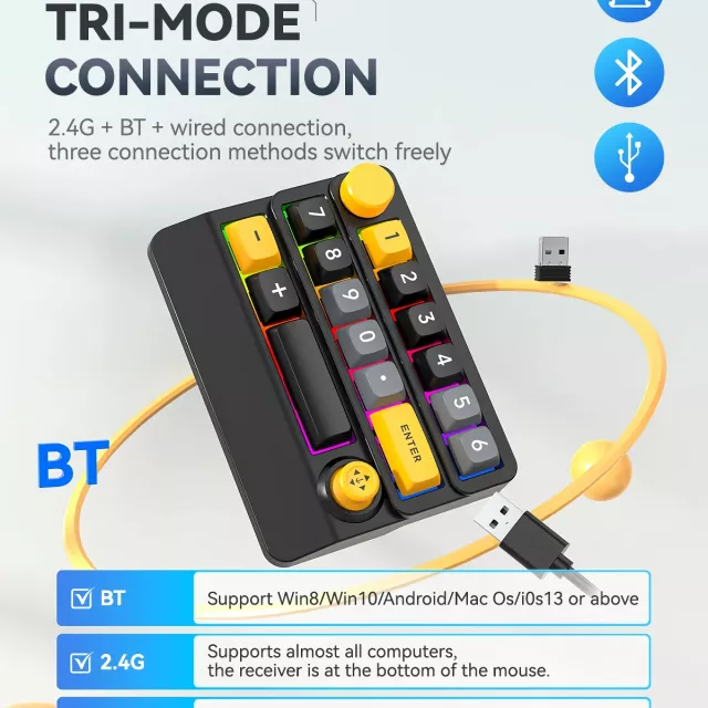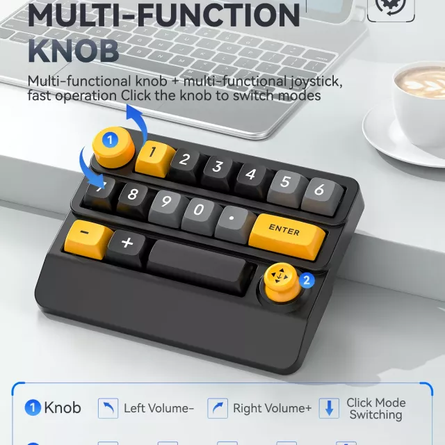 Unlike standard keyboards, this one brings together precision, customization, and versatility. With both Bluetooth and wired connectivity options, it adapts seamlessly to desktops, laptops, tablets, and more. The addition of a joystick sets it apart, offering an extra edge for smooth navigation and enhanced control during gaming sessions. Compact yet powerful, it delivers the punch of a full-featured mechanical keyboard in a space-saving design.