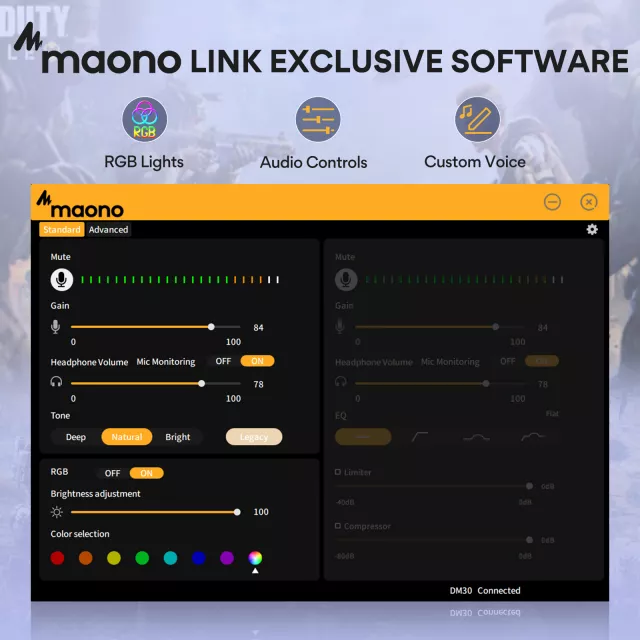 Level up your gaming, streaming, and voice chat experience with this high-performance RGB USB gaming microphone. Designed for crystal-clear voice capture, it features a cardioid pickup pattern that focuses on your voice while reducing unwanted background noise. With built-in EQ, limiter, and compressor settings via dedicated software, your voice will always sound loud, clear, and professional—perfect for competitive gaming, live streaming, podcasts, and online calls.