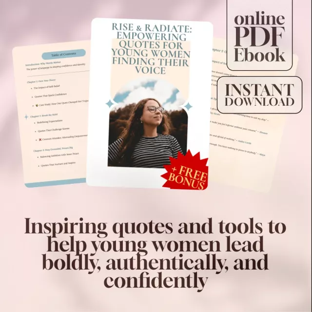 Rise & Radiate: Empowering Quotes for Young Women Finding Their Voice is more than just an ebook—it’s your daily dose of confidence, clarity, and courage. Packed with hand-picked inspirational quotes for young women, this beautifully curated digital download is designed to help you step into your full power, break limiting beliefs, and boldly express who you are. Whether you’re facing self-doubt, navigating change, or just looking for a daily spark, this guide offers motivation that speaks directly to your soul.