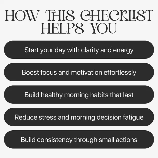 This checklist is for anyone who wants to stop rushing through mornings and start embracing them as a foundation for success — from goal-setters and dreamers to busy parents and creative thinkers. It’s simple, practical, and designed to fit your unique lifestyle.