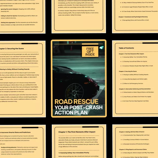 Accidents happen fast—and the moments after can feel overwhelming, confusing, and emotionally charged. Road Rescue: Your Post-Crash Action Plan is a practical digital guide designed to walk you through exactly what to do after a car crash, step by step. Whether it’s a minor fender bender or a serious collision, this guide helps you stay calm, protect yourself legally, and make smart decisions when they matter most. Written in clear, human language, it’s like having a knowledgeable friend in your pocket when you need it most.