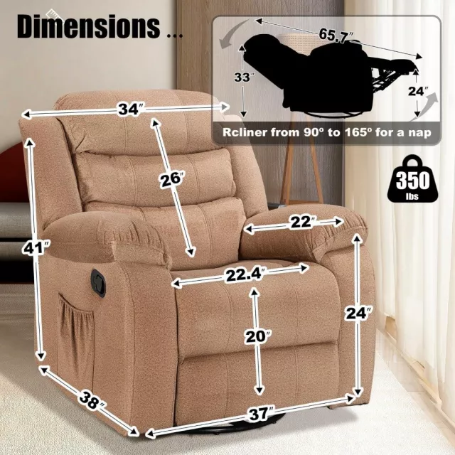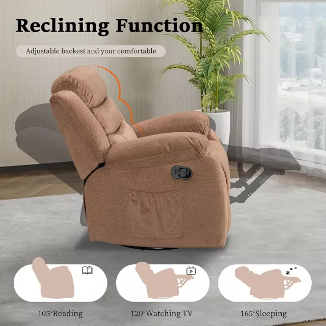 This recliner is best used when you need true comfort and calm. Whether it’s your go-to evening chair or a cozy addition to your reading nook, it adapts to how you feel—glide when you want to soothe your mind, swivel to stay connected with the room, or recline deeply to refresh your body.