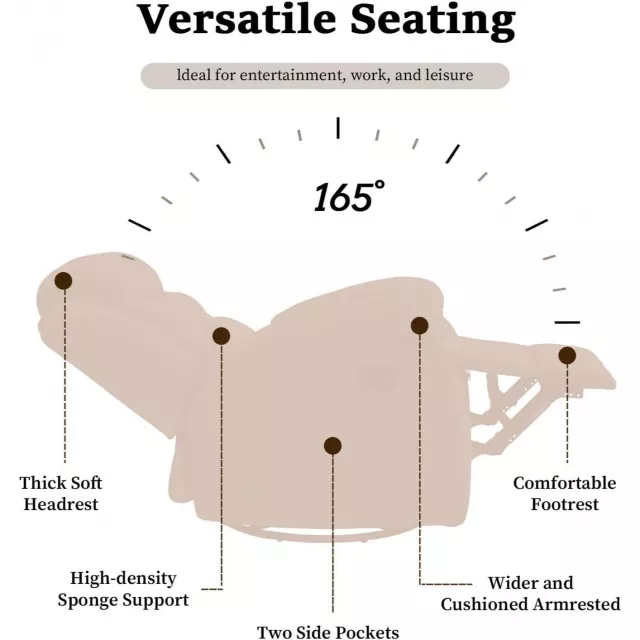 • Adjustable Recline (90°-165°) – Ideal for sitting upright, lounging, or napping