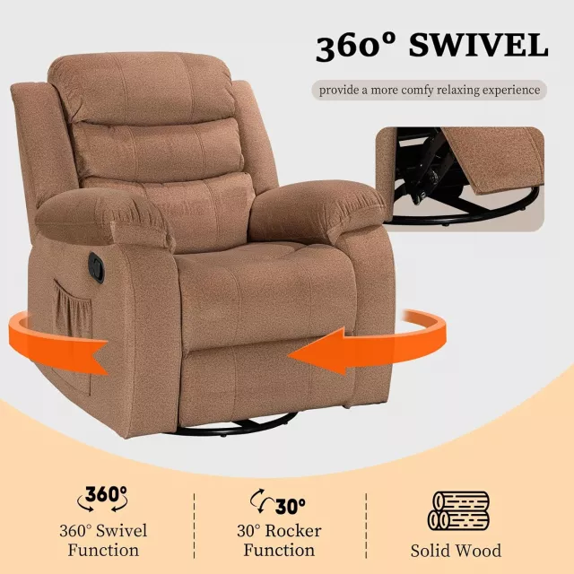 Relaxation has never been easier than with this Rocker Swivel Recliner Chair, designed specifically for adults who want to unwind in style. Whether you’re lounging after a long day, reading a book, or catching up on your favorite shows, this chair offers the perfect blend of function, comfort, and quality craftsmanship. With its 360-degree swivel base, smooth rocking motion, and quiet manual recline, this recliner invites you to sit back and forget the world for a while.