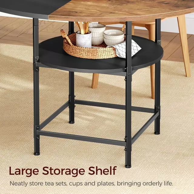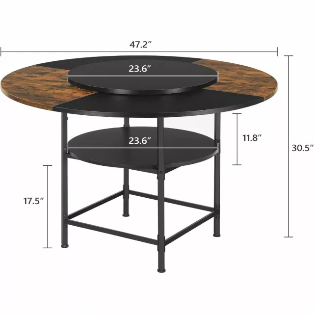 Measuring 47.2 inches in diameter and standing 30.5 inches tall, this round dining table comfortably seats four adults. A lower storage shelf tucked beneath the tabletop offers the perfect spot to keep dining essentials close at hand — napkins, placemats, or serving trays — all within easy reach.
