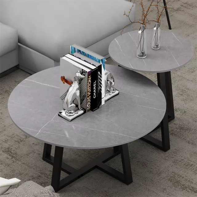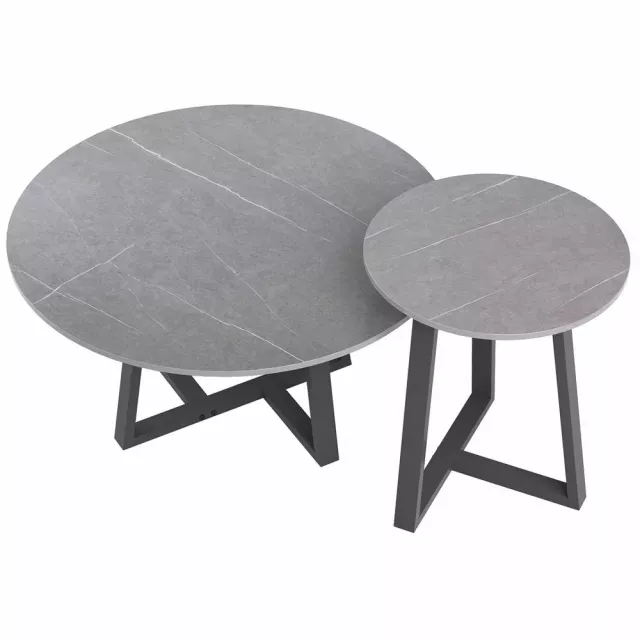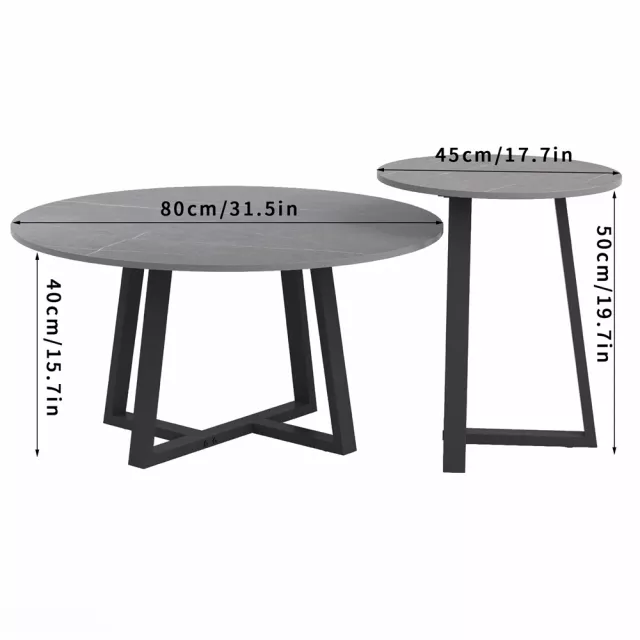 Add a touch of modern elegance to your home with this Round Modern Sintered Stone Nesting Coffee Table Set. Designed for both style and function, this set of two accent tables brings a luxurious yet minimalist charm to any space. The sleek sintered stone tabletops in dark grey, paired with black painted iron legs, make these tables a standout piece in contemporary interiors. Whether you use them as a coffee table duo or separate them to function as side or end tables, they adapt effortlessly to your needs.