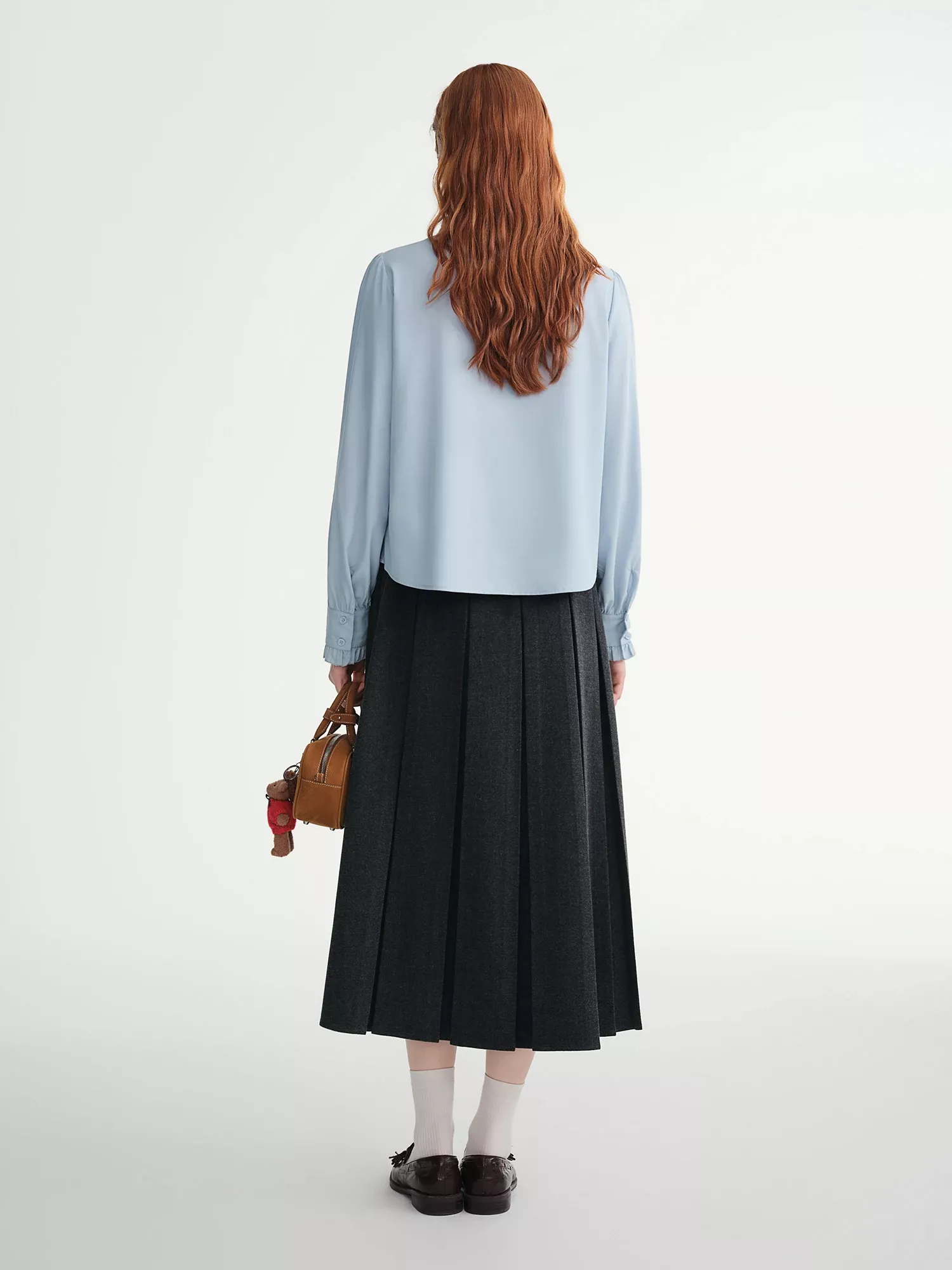 This elegant blouse combines style, comfort, and sophistication in one versatile piece. With its ruffled collar and puff sleeves, this top effortlessly adds a touch of feminine charm to your wardrobe. Crafted from a luxurious blend of modal, polyester, and spandex, it offers a soft, smooth feel that will keep you comfortable from morning to night. Whether you’re headed to the office or out for casual meetings, this blouse makes the perfect choice for those looking to blend elegance with everyday wearability.