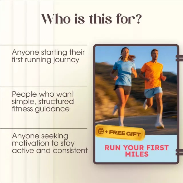 Ready to transform your fitness and mindset? Run Your First Miles is a complete digital guide designed to help beginners take their first steps into running with ease, motivation, and smart strategies. Whether you’re starting from scratch or coming back after a break, this step-by-step resource combines expert advice, real-life inspiration, and AI-powered tools to make your running journey simple, sustainable, and fun. Say goodbye to overwhelm and hello to progress—you’ll discover exactly how to go from walking to running your first miles confidently and consistently.