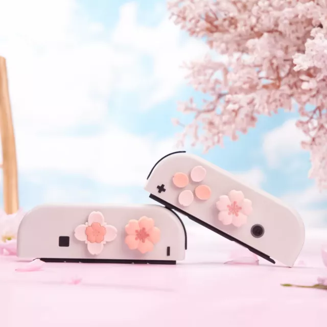 Give your Nintendo Switch or OLED a fresh new look with this charming sakura-inspired button cap set. Designed with soft silicone, these caps not only add a splash of style but also improve your grip and control while gaming. The delicate pink cherry blossom theme makes your console stand out, giving it both personality and elegance.