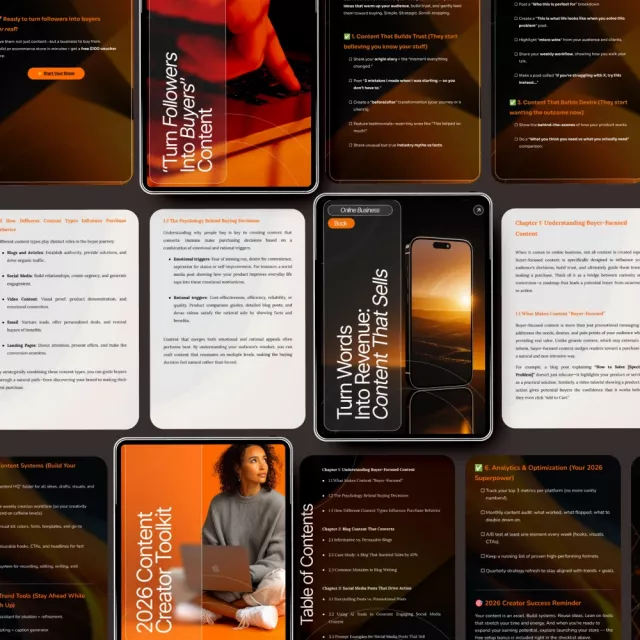 • Turn Words Into Revenue: Content That Sells – A comprehensive guide that teaches you the strategies behind writing content that drives sales and builds trust.