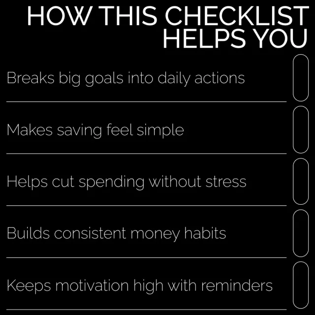 This checklist focuses on action, not theory. It’s designed for busy people who want clear direction without complicated spreadsheets. Unlike generic savings printables, this guide combines budgeting, mindset, automation, and motivation in one simple flow. You always know what to do next.