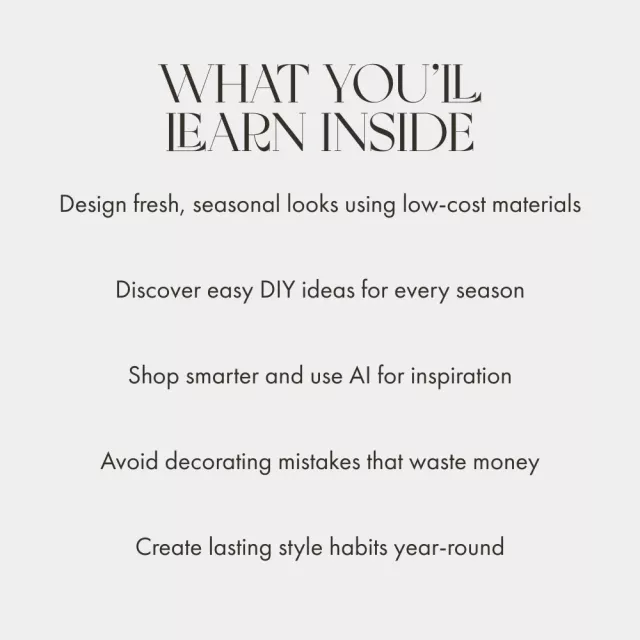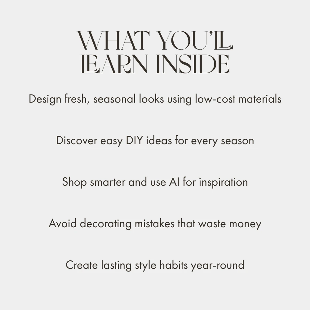 Unlike other guides that focus on expensive trends, Seasonal Style Without Spending shows you how to use what you already have, enhance it with creativity, and add warmth and charm to every corner of your home. You’ll walk away inspired, empowered, and ready to refresh your space — one season at a time.