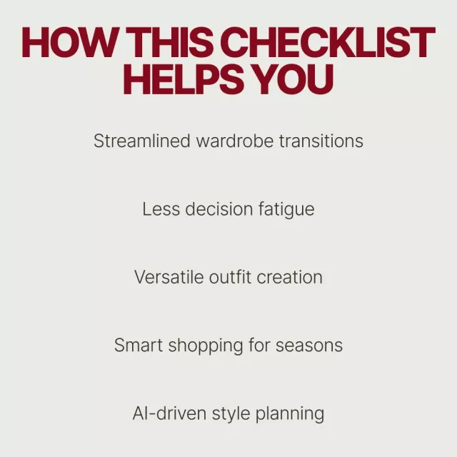 This digital checklist is more than just a guide; it’s a step-by-step strategy for achieving a functional, stylish capsule wardrobe each season. Whether you’re a minimalist looking to maximize your wardrobe or simply want to streamline your seasonal wardrobe swaps, this resource makes it easy. Unlike other guides that focus only on decluttering, Seasonal Switch Made Simple combines wardrobe planning, style tips, and cutting-edge AI tools to help you create a wardrobe that truly works for you, every day.