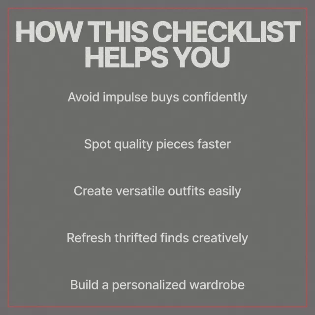 This checklist is perfect for beginners who feel overwhelmed by thrift stores, seasoned thrifters wanting more polish, and anyone who loves sustainable fashion. If you’re searching for practical second hand styling tips that actually work in real life, this resource was made for you.