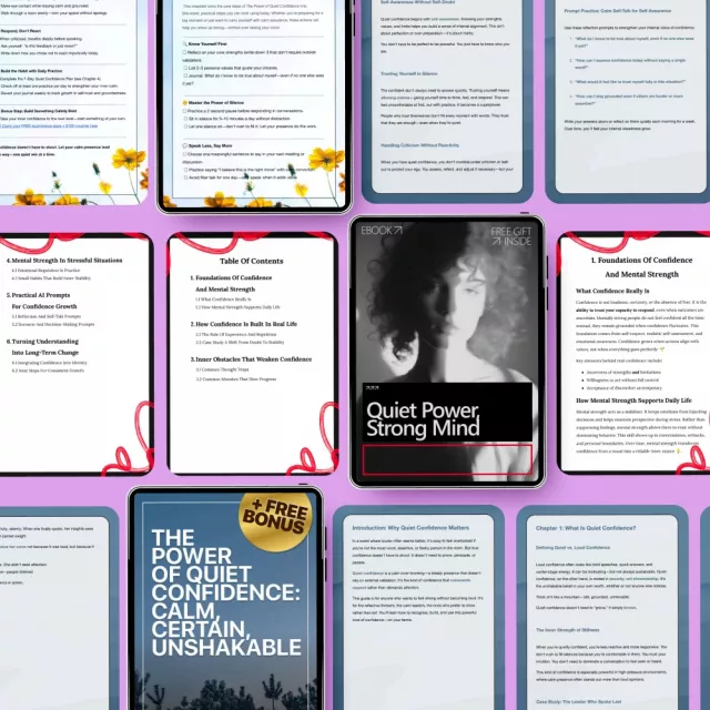 This bundle is perfect for anyone who is ready to build and nurture self-confidence in a calm and grounded way. Whether you’re an introvert who wants to embrace your quiet power or someone who struggles with self-doubt, the Self-Confidence Basics Pack is for you. It’s ideal for those who want to improve their personal, professional, or social confidence without relying on loud, boastful techniques.