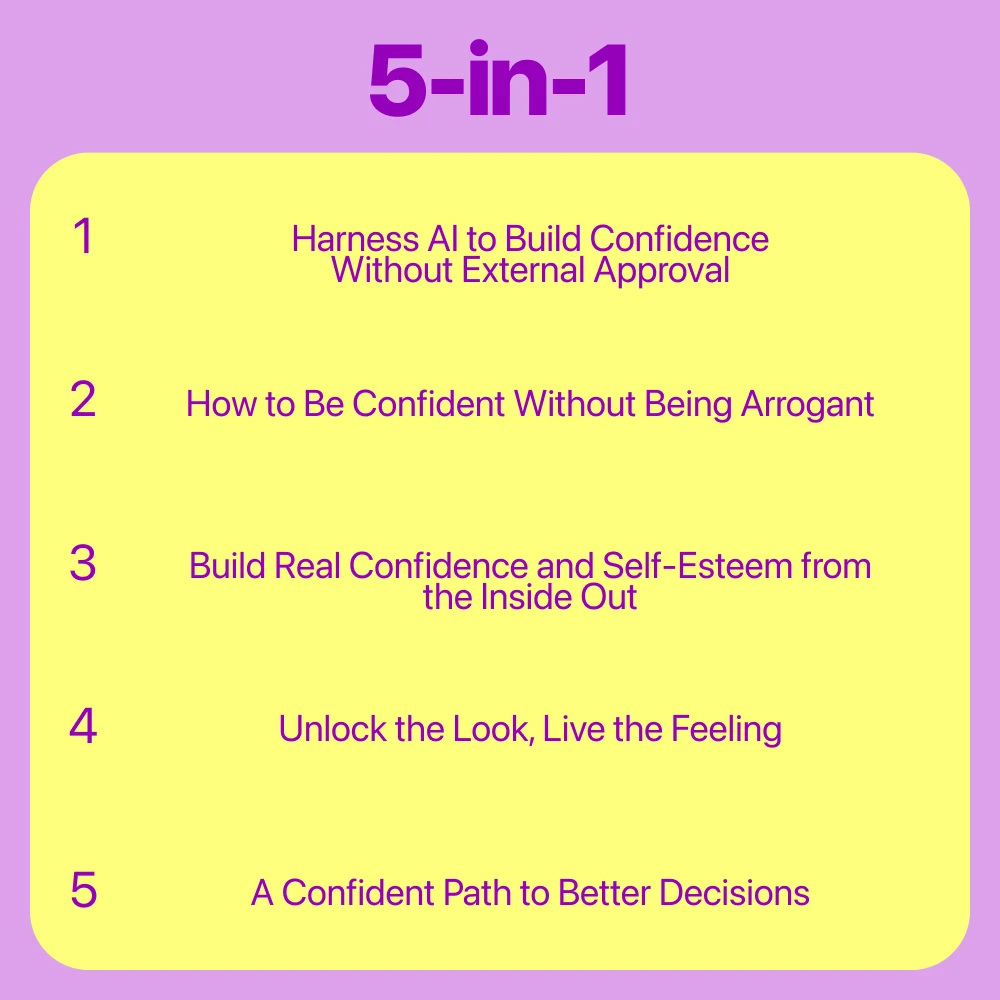 Over the years, I’ve tried countless self-help books and courses in an effort to boost my confidence, but they always felt like temporary fixes. When I came across this toolkit, I was skeptical, but I decided to give it a shot. I’m so glad I did. From the very beginning, I noticed that this toolkit isn’t like anything I’ve tried before. The expert guides take a comprehensive approach to building confidence, focusing not just on the external, but on developing true self-esteem from within. The AI techniques were a game-changer for me. They showed me how to build confidence without relying on others’ approval, which was exactly what I needed. I’ve spent so much of my life looking for validation from external sources, but this toolkit helped me see that I don’t need anyone else’s opinion to feel good about myself. The exercises and action steps were easy to follow, and I loved how they were designed to gradually help me shift my mindset. One of the biggest changes I’ve noticed is how much more confident I feel making decisions. I used to hesitate and second-guess myself constantly, but now I trust myself and my choices. The toolkit also taught me how to present myself confidently in both my appearance and my actions, which has made a huge difference in how I show up in the world. Overall, this toolkit has helped me make lasting changes in my confidence and self-esteem. If you’re ready to make real, sustainable improvements in your self-worth, I highly recommend giving it a try!