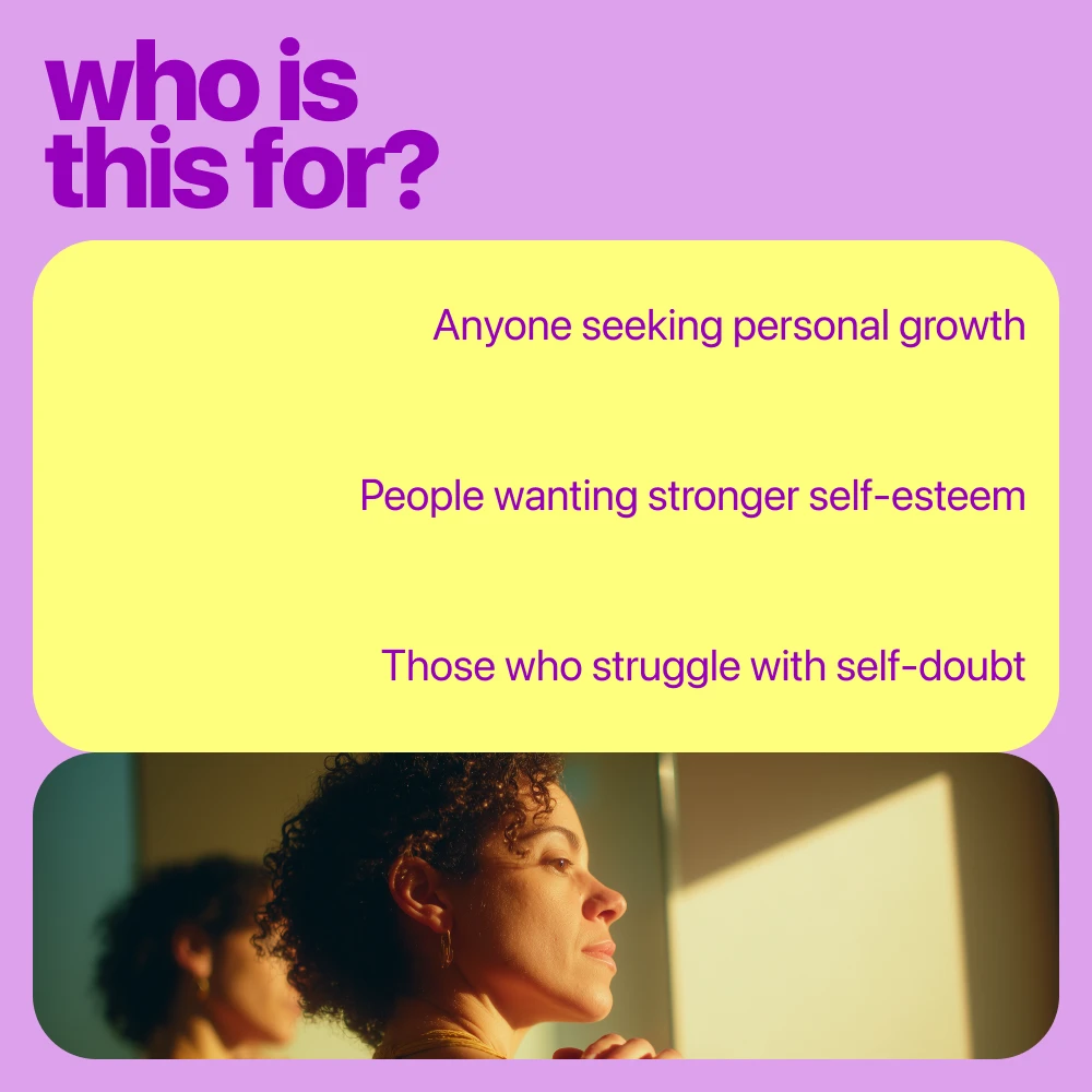 This toolkit is perfect for anyone who wants to build confidence and self-esteem, whether you’re just starting your personal growth journey or looking to deepen your existing practices. Whether you’re a young professional, a student, an entrepreneur, or someone looking to overcome self-doubt, these resources will empower you to take charge of your life and live with confidence.