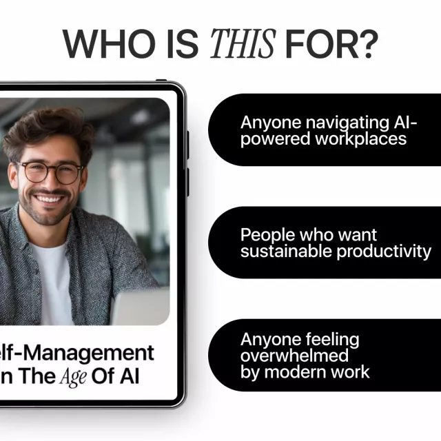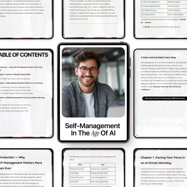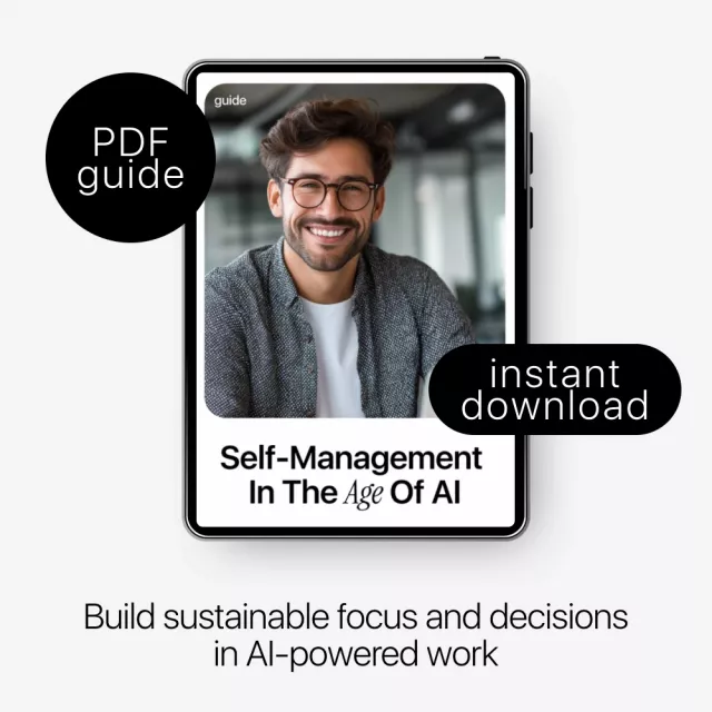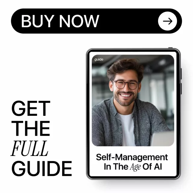 If you’re ready to regain focus, make clearer decisions, and build a healthier way of working with AI, download this guide today. Self-Management in the Age of AI gives you tools you can apply immediately—no overwhelm, no fluff, just practical progress.