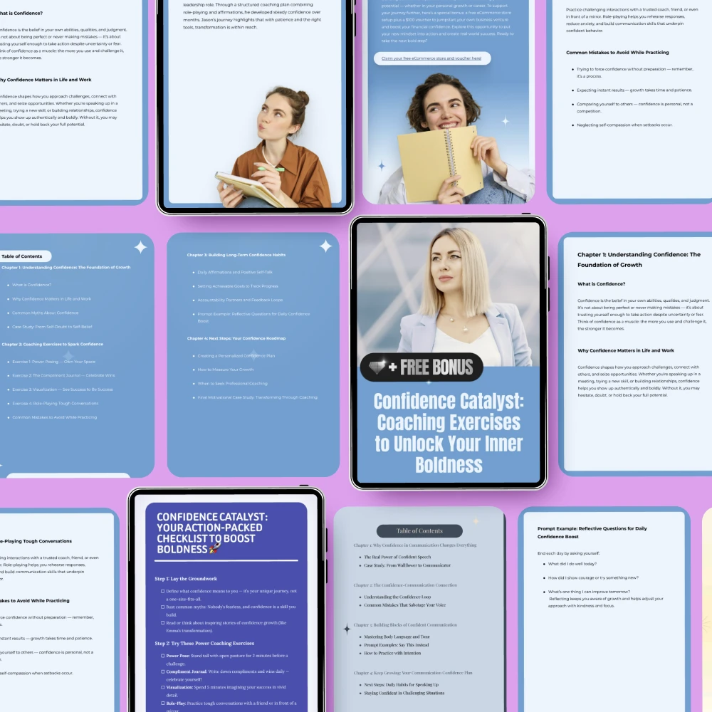 Are you ready to build lasting self-esteem and embrace your true potential? The Self-Worth and Confidence Builder Toolkit is your ultimate resource for transforming your mindset, boosting your confidence, and living life with unshakable boldness. This powerful 3-in-1 bundle is packed with practical tools, including expert guides, actionable checklists, and empowering coaching exercises designed to help you take charge of your confidence journey. Whether you’re starting from scratch or looking to build upon what you already know, this toolkit is the perfect companion to help you achieve your personal goals.