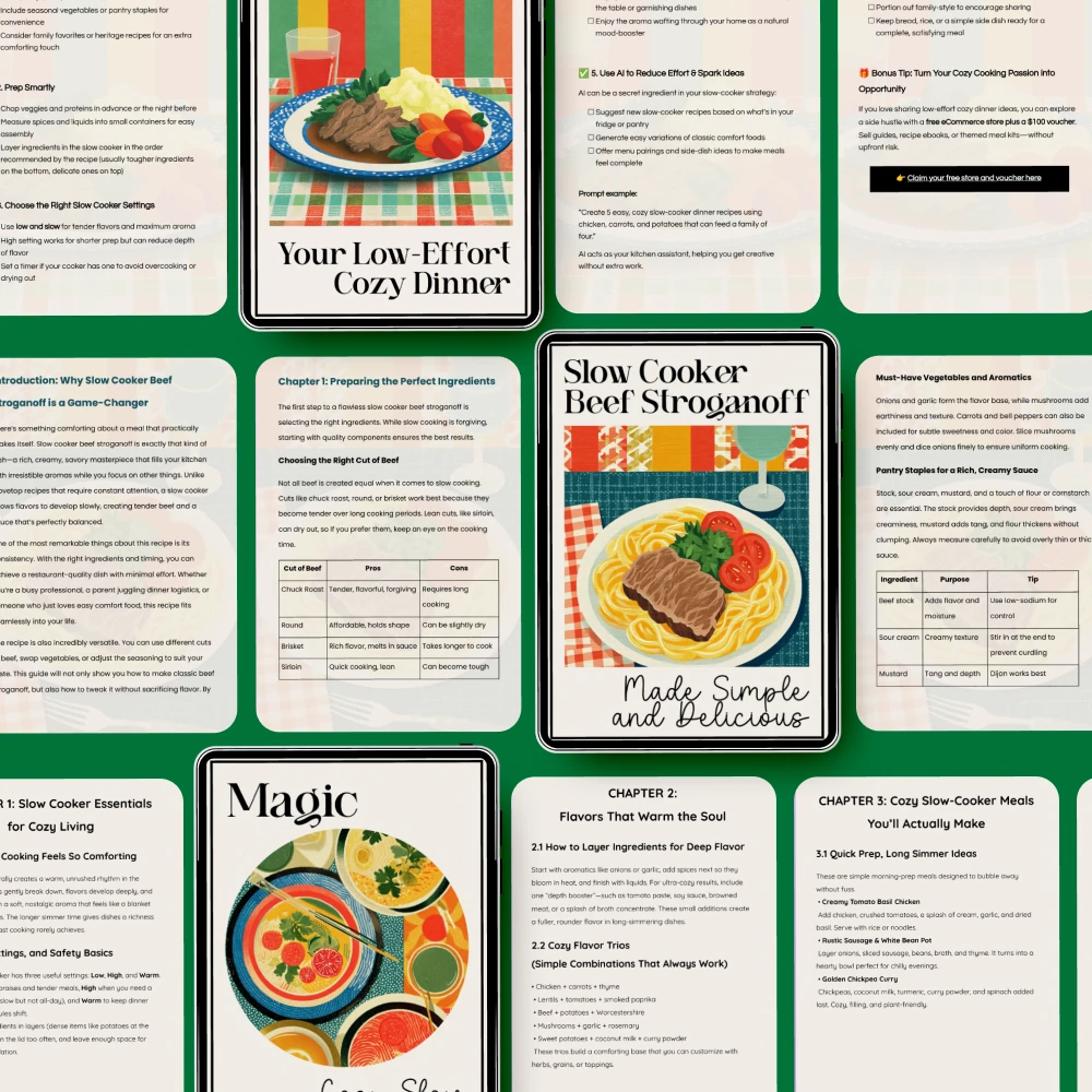 This is a solid resource for making stress-free meals. The slow cooker guides and checklists are well organized and make cooking effortless. The meals themselves are tasty, but I wish there were a bit more variety. A few of the recipes feel a little repetitive after a few uses. Still, for anyone who wants a low-effort, cozy dinner, this pack does the job