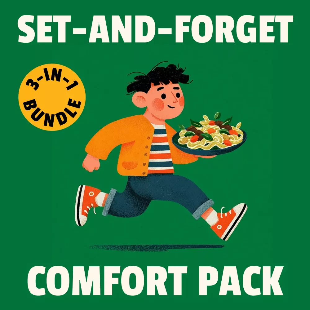 Say goodbye to hectic meal planning and hello to cozy, delicious dinners with our Set-and-Forget Comfort Pack. This 3-in-1 digital bundle brings together the best slow cooker guides, eBooks, and checklists to make your life easier and your meals even more comforting. Whether you’re a busy professional, a parent on the go, or just someone who loves easy, hearty meals, this bundle is designed to help you effortlessly create low-effort cozy dinners that will warm you from the inside out.
