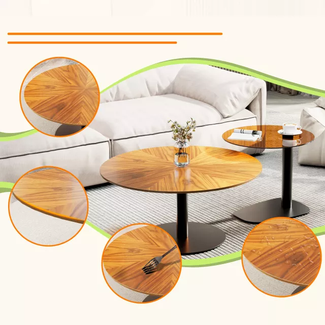 Perfect for modern homes and offices, this set of 2 round coffee tables blends function with fashion. Whether you’re entertaining guests, relaxing with a cup of coffee, or displaying your favorite decor, these tables provide a sleek and practical surface. The combination of the beautiful wood grain and brown tempered glass adds a touch of sophistication to your living room or any room in your home. With easy assembly and sturdy construction, you can enjoy your new furniture for years to come.