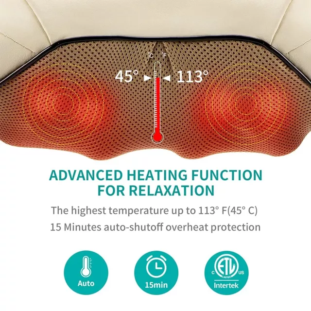 Shiatsu Neck, Shoulder & Back Massager with Heat – Deep Tissue Kneading Pillow