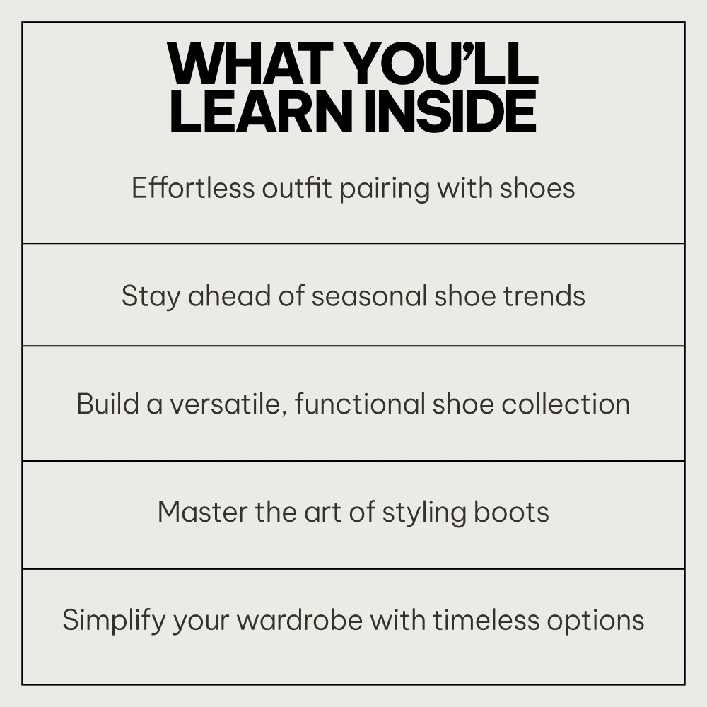 Finally, a guide that covers it all! From trends to timeless styles, this bundle has helped me step up my shoe game. Now I always know what shoes to wear🙌🙌🙌🙌🙌